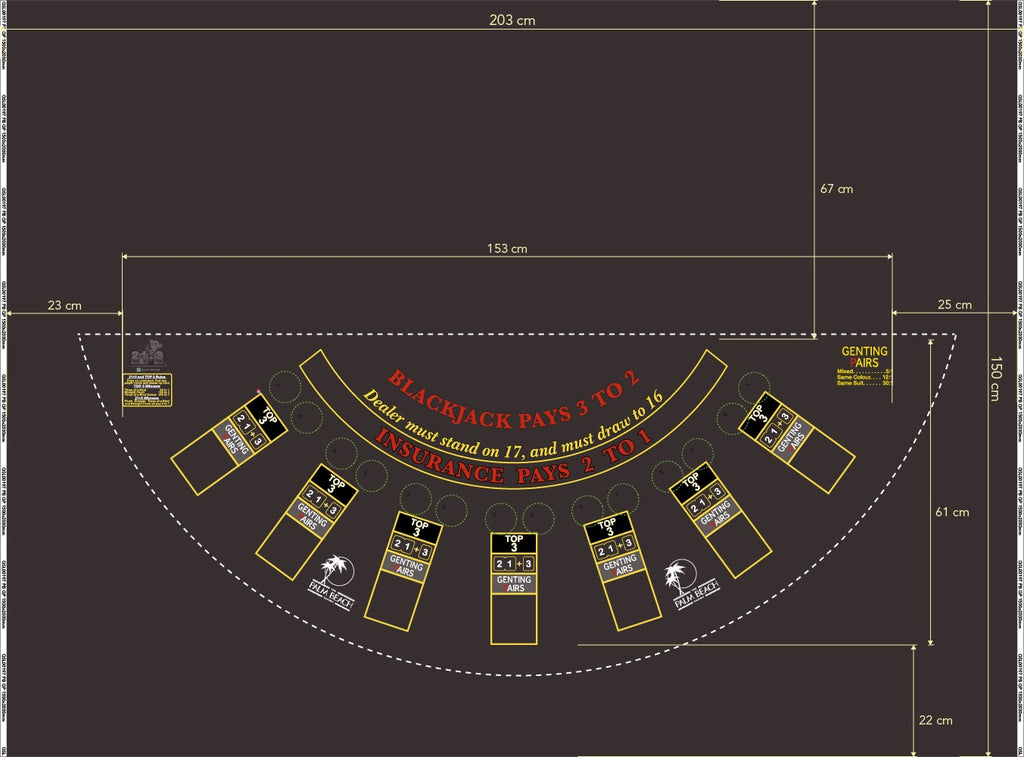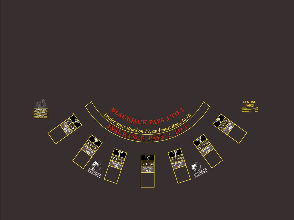 Layout BJ Genting Pairs, 21+3, Top3, Blazing 7s, Palm Beach Charcoal
