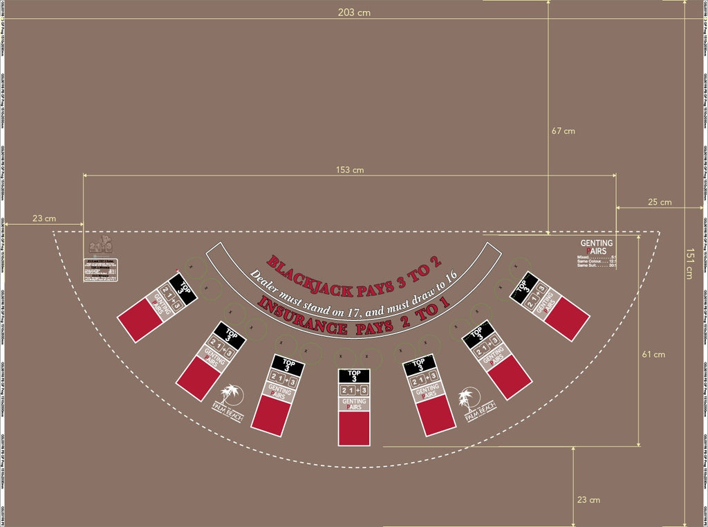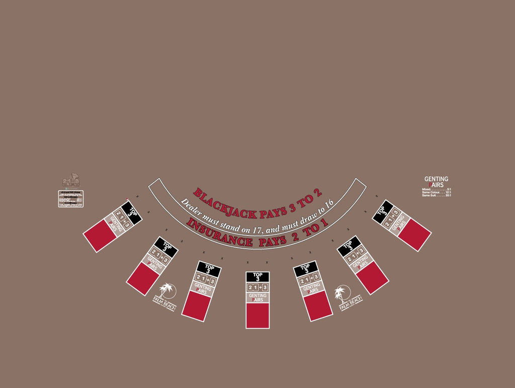 Layout BJ Genting Pairs, 21+3, Top3, Blazing 7s, in Palm Beach Grey