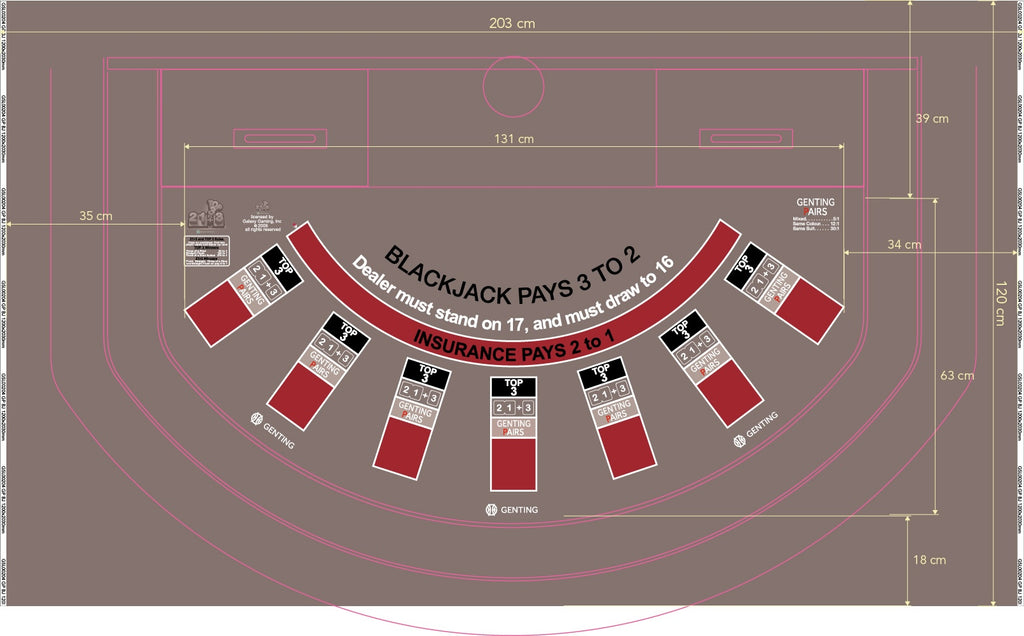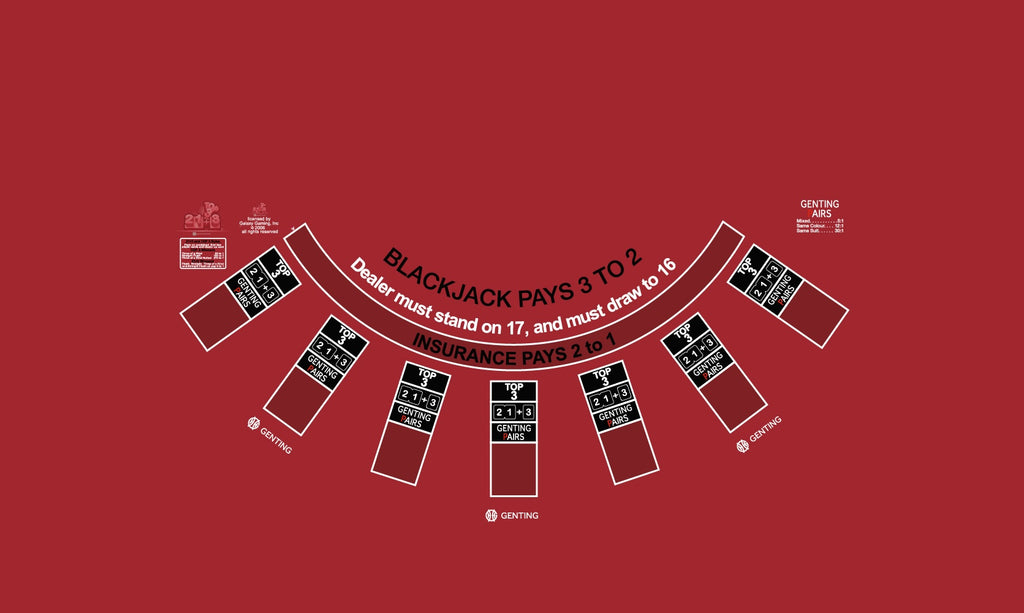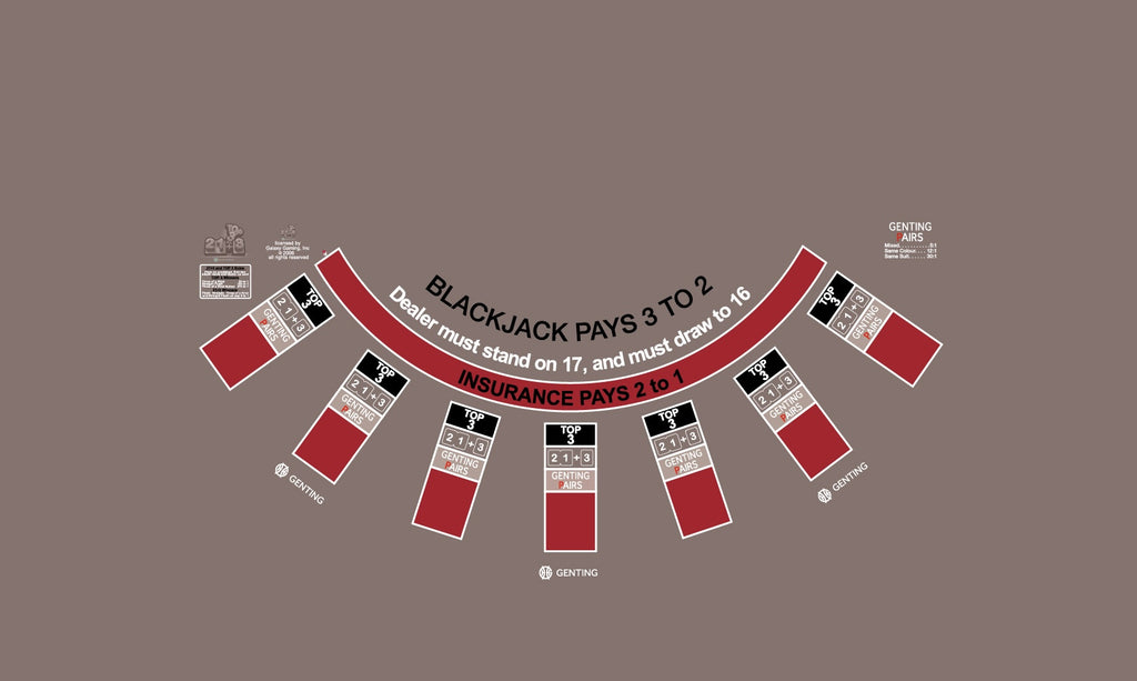 Layout BJ Genting Pairs, 21+3, Top3, Snub table in Genting Grey or Genting Red