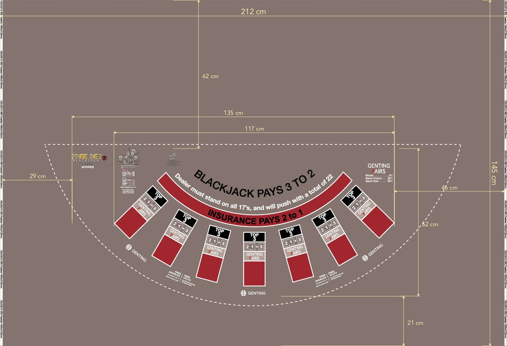 Layout Freebet BJ Genting Pairs 21+3, top3, 7 Player, 45 Kensington, Grey