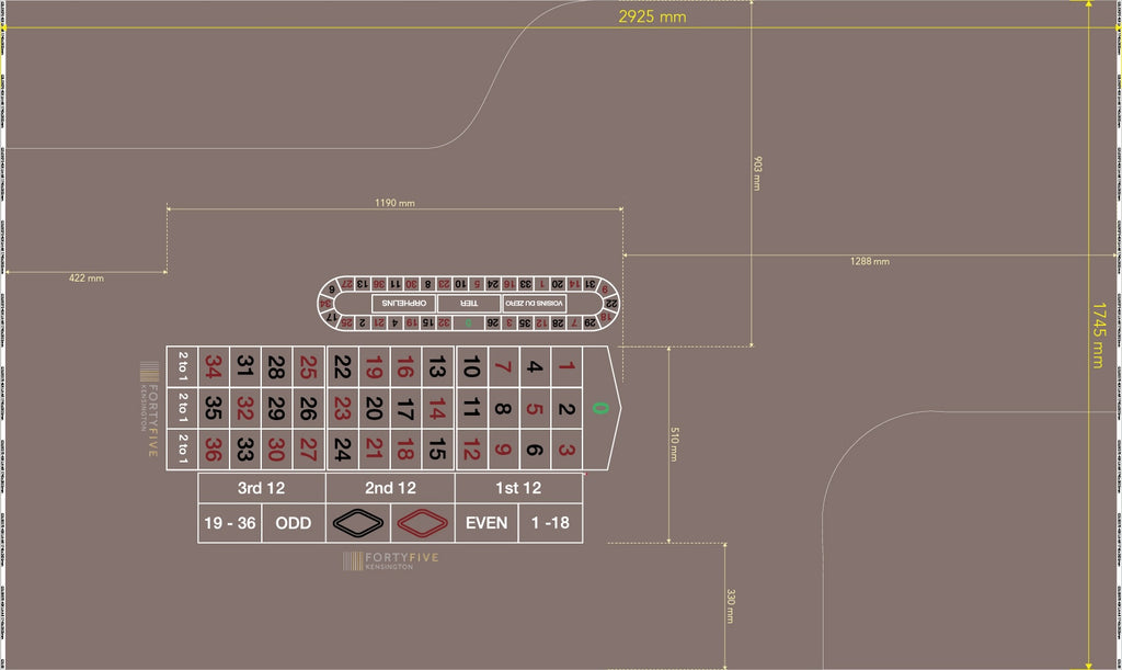 Layout, LH AR, NB, Single zero, 0, 45 Kensington, Genting standard Grey