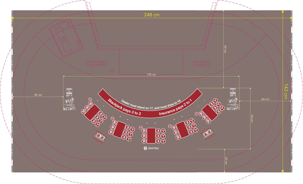 Layout Venetian BJ Dual Progressive with side bets, 21+3, Standard Genting grey